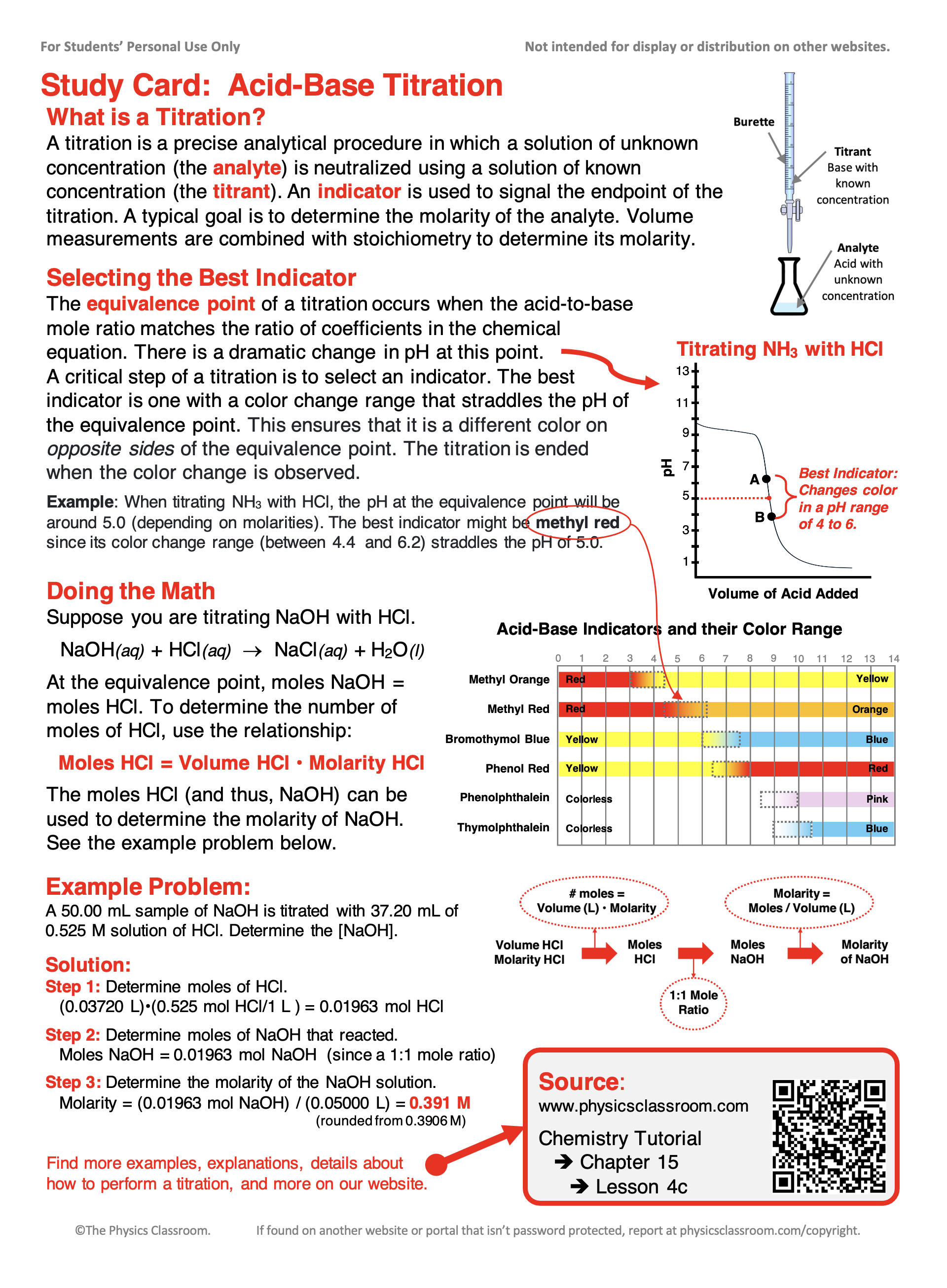 - Download our Study Card on Acid-Base Titration. Save it to a safe location and use it as a review tool.