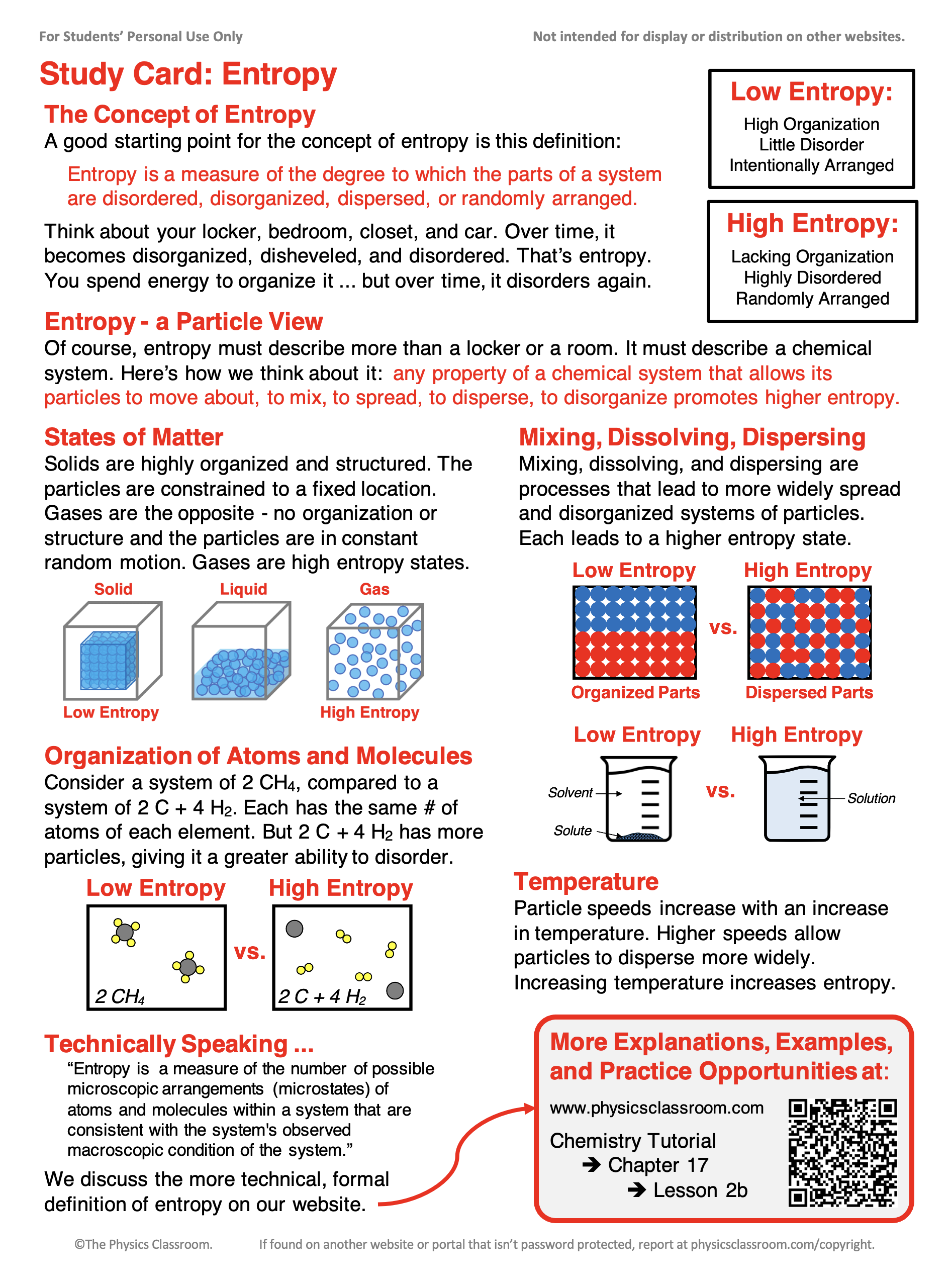 - Download our Study Card on Entropy. Save it to a safe location and use it as a review tool.
