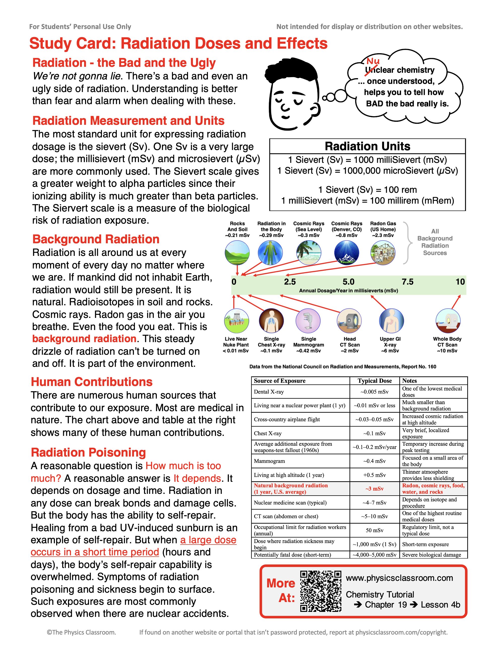 - Download our Study Card on Radiation Dose and Effects. Save it to a safe location and use it as a review tool.