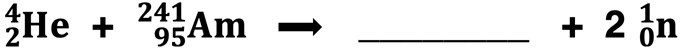 3. Americium-241 is bombarded with an alpha particle to produce two neutrons and another nucleus. Write the complete nuclear equation for this bombardment reaction.