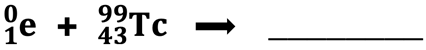 5. Technitium-99 (Tc) is bombarded with a positron to produce one new nucleus. There is no product particle. Write the complete nuclear equation for this bombardment reaction.