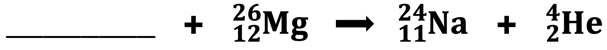 4. A magnesium-26 nucleus is bombarded to produce a sodium-24 nucleus and an alpha particle. Write the complete nuclear equation for this bombardment reaction.