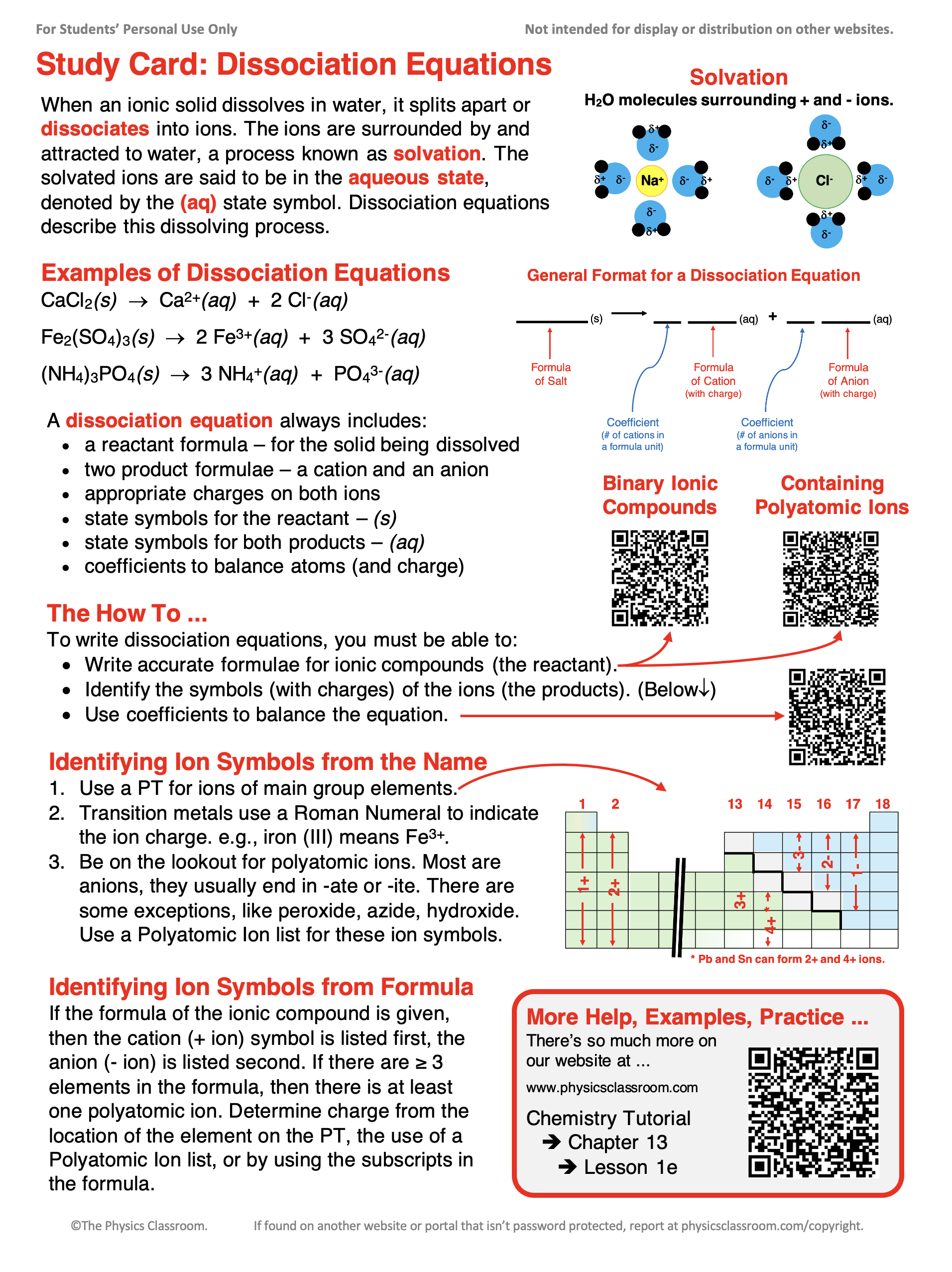 - Download our Study Card on Dissociation Equations. Save it to a safe location and use it as a review tool.