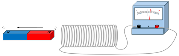 Michael Faraday is considered the father of electromagnetic induction as he observed that a change in magnetic flux through the area enclosed by a loop of wire induces a current in that loop. The animation below illustrates this phenomenon. Let’s imagine the current changes in the solenoid on the left. Since a current produces a magnetic field, a changing current will produce a changing magnetic field. This changing field, then, creates a changing magnetic flux through the single loop of wire shown to the right. As the number of B-field lines that pierce the area enclosed by this loop changes, the flux through this area changes. Faraday stated that the greater the rate of change of magnetic flux through the loop on the right, the greater the current induced in this loop. The galvanometer connected to the loop on the right illustrates that such a current is present when the flux changes through the loop. Faraday summarized his discovery in a simple and yet profound equation known as Faraday’s Law.