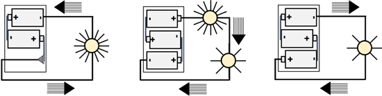 Starbursts: The rays that surround a bulb are called starbursts and communicate information about how bright the bulb is. A bright bulb will have a lot of rays around it. A dimmer bulb will have fewer rays around it. A correctly drawn diagram for a 2-bulb or a 3-bulb circuit would display the same number of rays around each bulb. That is, the bulbs would shine equally bright.