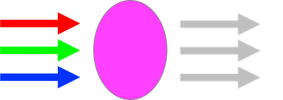 Color filters are designed to absorb a range of wavlengths of light and allow other wavelengths to pass through. Wavelengths of light are associated with a color of light. A simple model for thinking about this is to think in terms of the three primary colors of light and in terms of six simple filters that absorb one or more primary light colors and transmit what isn't absorbed.