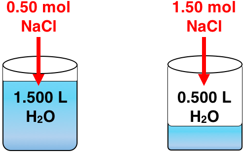 Not all solutions are created equal. Some are more concentrated than others. Molarity is one means of expressing how concentrated a solution is with solute. Molarity is defined as the number of moles of solute per liter of solution. Its units are mole/liter, sometimes abbreviated with a capital M. Knowledge of the moles of solute and the liters of solution allows one to calculate molarity by division.