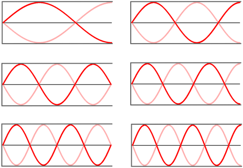 Like any object, an air column has a set of frequencies at which it naturally vibrates. When forced into resonate or vibrate, the air column will vibrate at one of these frequencies. These frequencies are referred to as harmonics. The frequencies are related to one another by whole number ratios. For instance, the frequency of the 5th harmonic is 5 times larger than the first harmonic. And the frequency of the nth harmonic is n times larger than the frequency of the first harmonic.