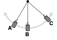 A pendulum is swinging back and forth along its circular arc. Consider locations A, B and C as shown. Match each location to the corresponding energy bar chart.