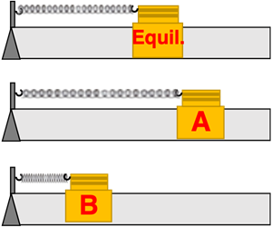 • In which location - A or B - is the spring stretched or compressed the most? Compare the distance the glider is from Equil.